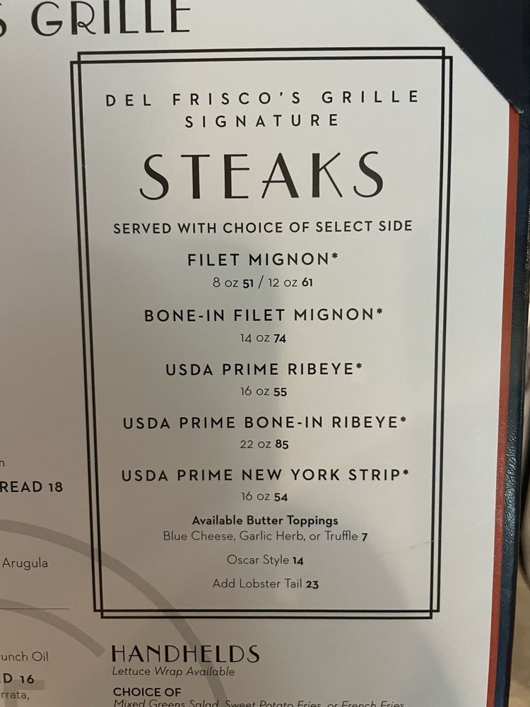 Del Frisco's Grille FL Menu